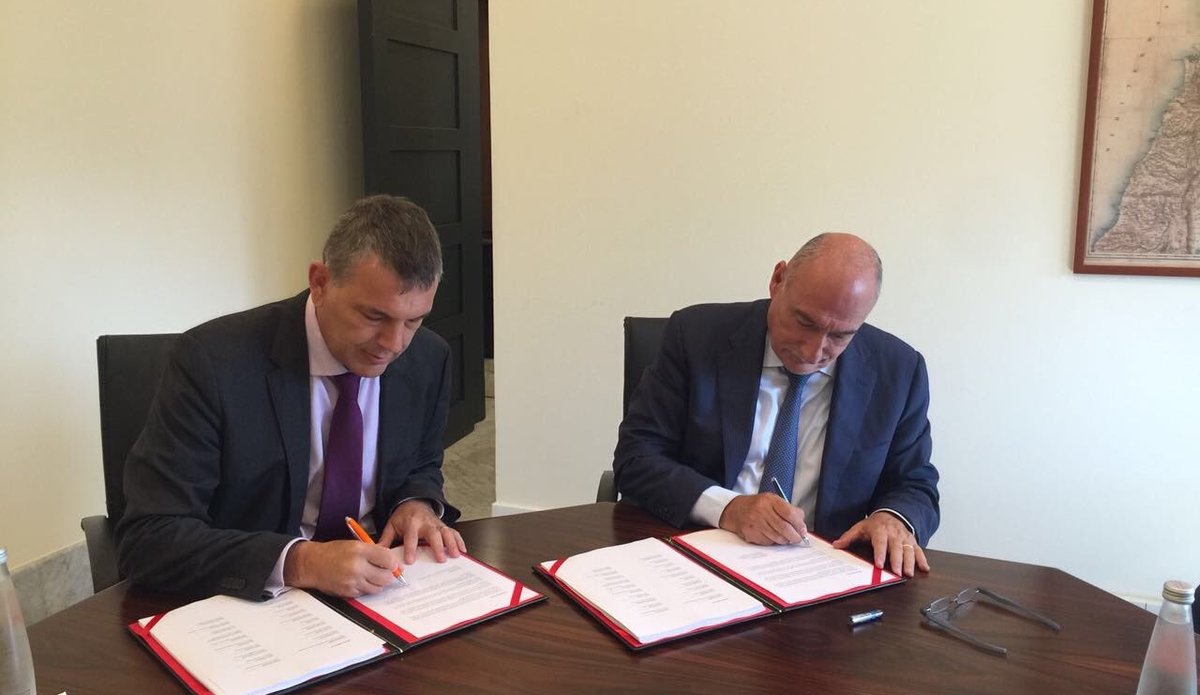 UN Deputy Special Coordinator, Resident and Humanitarian Coordinator Philippe Lazzarini and Lebanon's Secretary-General of the Cabinet Fouad Fleifel Sign the UN Strategic Framework for Lebano